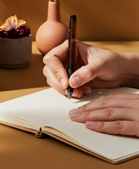 The audio walks you through breathwork, somatic practices, and guided meditation designed to move your nervous system from fight-or-flight to rest-and-restore. You'll use each item in the box - the scents ground you, the journal captures what arises, the ritual objects create sacred space.